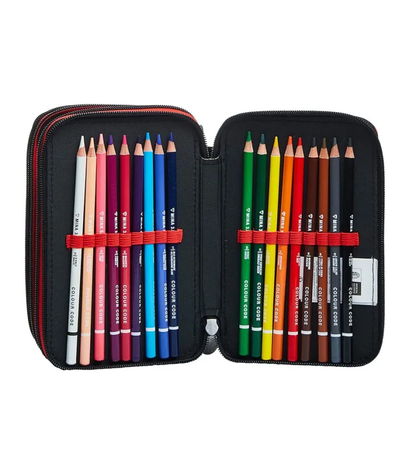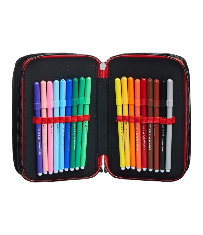 L’Astuccio 3 Zip Milan Ha Un Triplo Scomparto Accessoriato Con Tutto Il Materiale Necessario Per Vivere Al Massimo La Tua Giornata Di Scuola: 1 Penna Cancellabile Tratto Cancellik Con Inchiostro Blu, 1 Penna A Sfera Tratto 1Uno Con Inchiostro Rosso, 18 Pastelli Colour Code, 18 Pennarelli Giotto Turbo Color, 1 Matita Grafite Fila, 1 Gomma, 1 Temperino, 1 Righello Trasparente, 1 Forbice In Metallo Con Maniglia In Plastica. Abbinalo Con Uno Zaino O Un Trolley Milan.