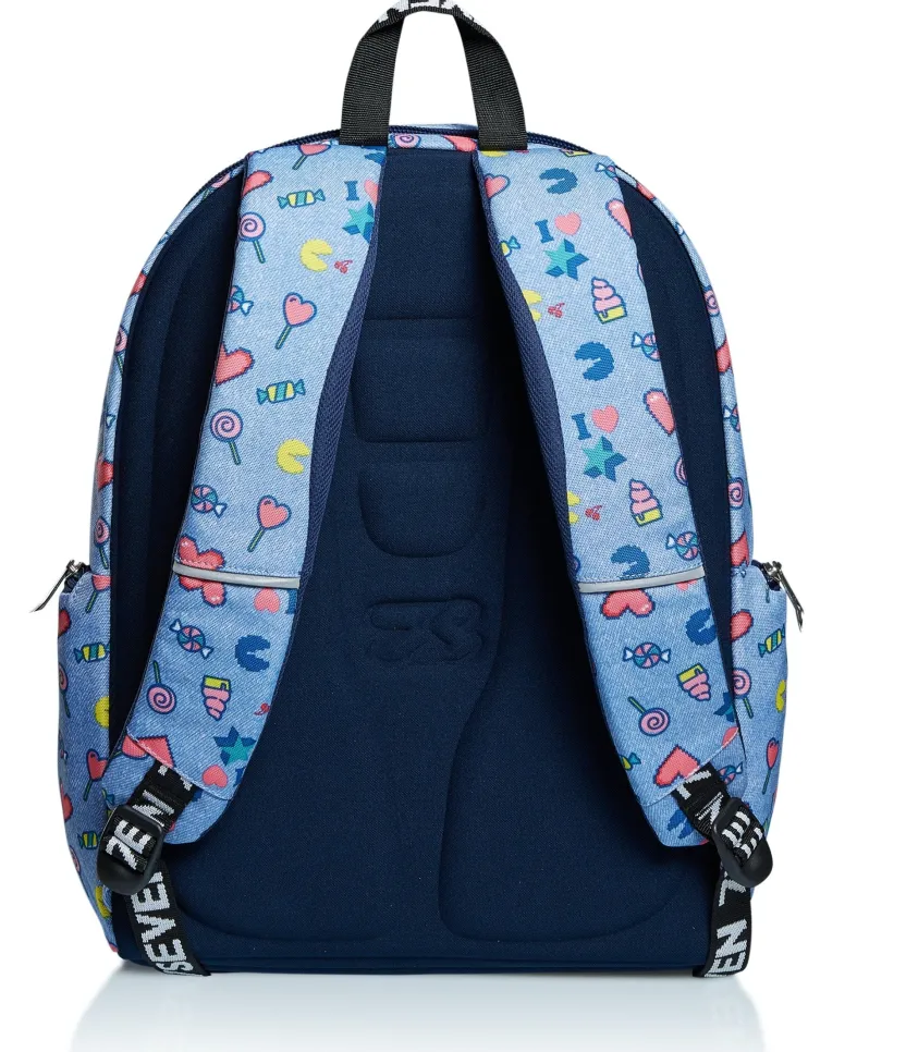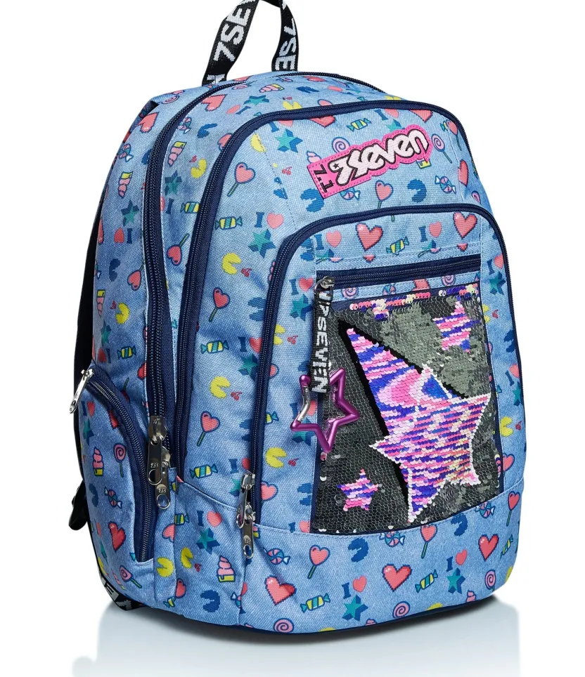 Lo Zaino Seven Starry Rainbow Ha Un Look Alla Moda Che Cambia Grazie Alle Paillettes Reversibili. Dotato Di Moschettone Staccabile, E Ideale Per Affrontare Le Tue Giornate Piene Di Impegni. Nell’Ampio Doppio Scomparto Con Apertura Facilitata Tramite Zip Distribuisci Ottimamente Il Carico Sfruttando Anche Le Tasche Laterali E Quella Frontale Con Organizer. Ha Inoltre Una Tasca Per Tablet O Pc.Lo Schienale Ergosystem Preformato Con Fondo Integrato E Gli Spallacci Imbottiti E Traspiranti Lo Rendono Leggero E Confortevole Da Indossare Anche Quando E Davvero Pieno, Proteggendoti La Schiena. E Con Gli Inserti Rifrangenti Sarai Piu Visibile Per La Tua Sicurezza.