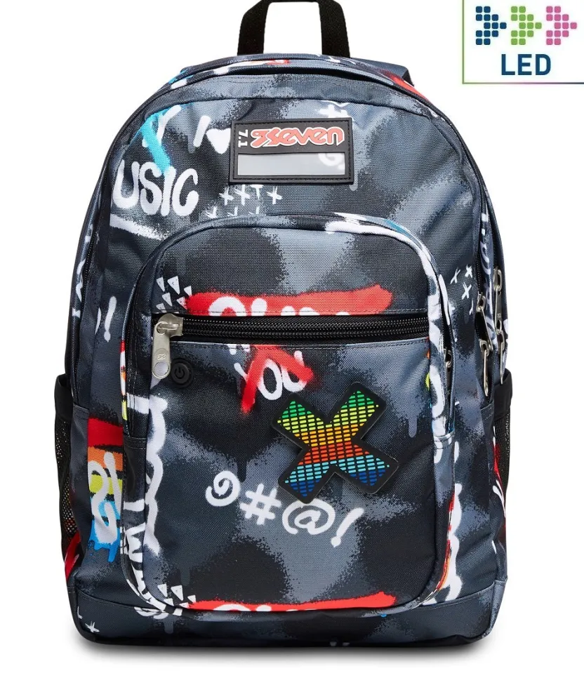 Questo Zaino Seven Freethink E Dotato Di Un Fantastico Dispositivo Led Che Si Illumina A Tempo Di Musica! Lo Attivi Con Il Taso On Ed E Ricaricabile Tramite Usb. Nel Suo Capiente E Spazioso Doppio Scomparto Puoi Metterci Davvero Tutto Quello Che Ti Serve, Anche Il Tuo Pc E La Tua Borraccia, Potendo Sfruttare Le Sue Pratiche Tasche. Inoltre E Comodo Da Indossare Sulle Spalle Grazie Allo Schienale Ergosystem Preformato E Agli Spallacci Imbottiti, Traspiranti E Con Inserti Rifrangenti.
