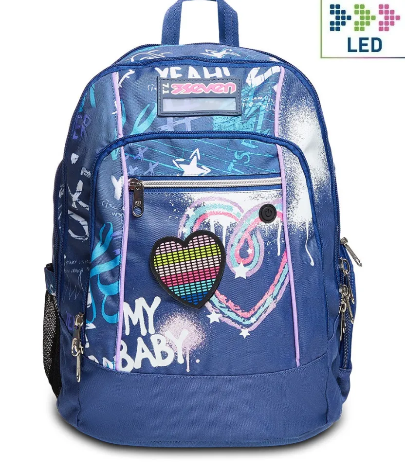 Questo Zaino Seven Advanced E Dotato Di Un Fantastico Cuore Led Che Si Illumina A Tempo Di Musica! Lo Attivi Con Il Tasto On Ed E Ricaricabile Tramite Usb. Nel Suo Capiente E Spazioso Doppio Scomparto C’E Posto Davvero Per Tutto Quello Che Ti Serve, Anche Per Il Tuo Notebook E La Tua Borraccia, Potendo Contare Inoltre Su Numerose E Pratiche Tasche. Inoltre E Comodo Da Portare Sulle Spalle Grazie Allo Schienale Ergosystem Preformato E Agli Spallacci Imbottiti, Traspiranti E Con Inserti Rifrangenti. Il Fondo Integrato Invece Mantiene Inalterata La Struttura Dello Zaino Anche A Pieno Carico Garantendo La Stabilita Del Contenuto.