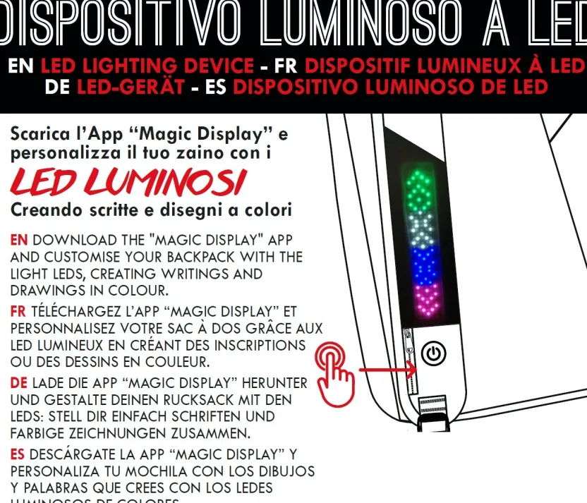 Questo Zaino Reversibile The Double, In Questa Special Edition, E Davvero Sorprendente Perche Dotato Di Dispositivo Led Sullo Spallaccio, Che Ti Permette, Tramite L’App Magic Display, Di Scrivere E Comunicare Le Tue Emozioni. Inoltre Strizza L’Occhio All’Ambiente Essendo Realizzato In Eco Material, Tessuto Ecologico Resistente E Di Grande Qualita, Ottenuto Dal Riutilizzo Di 30 Bottiglie In Pet Da 500Ml. Completamente Reversibile, In 3 Semplici Mosse Stacchi Lo Schienale, Lo Rigiri E Hai Un Altro Zaino! Ha Grande Spazio Interno E Su Ogni Lato Ha Una Comodissima Tasca, Oltre A Quella Frontale, Per Mettere Tutto Quello Che Ti Serve Per La Scuola O Il Tempo Libero. Con Lo Schienale Imbottito E Rivestito In Tessuto E Gli Spallacci Imbottiti E Rivestiti In Tessuto E Rete Traspirante, Poi, Indossarlo E Sicuro E Confortevole. Cosa Aspetti A Prenderlo? Questo Zaino Ti Lascera A Bocca Aperta, Ma Mai Senza Parole!
